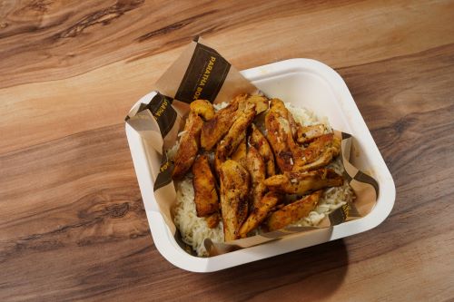 Rice steamed to a soft delicacy topped with freshly grilled chicken steak and sauce of your choice.