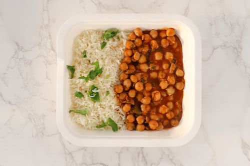 A classic chickpea curry cooked with exquisite spices and freshly steamed rice.