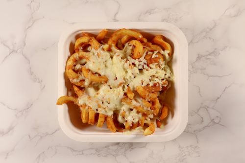 Freshly cooked curly fries finished with melted cheese.