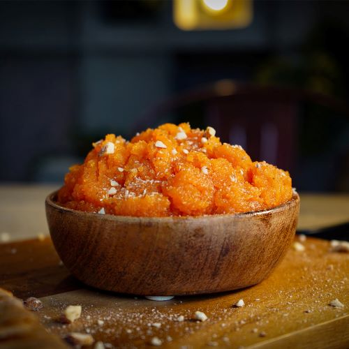 Suji Ka Halwa served with a plain paratha, freshly made in store every day! Try this sweet, delicious and comforting treat with fine semolina, sugar, milk and butter.